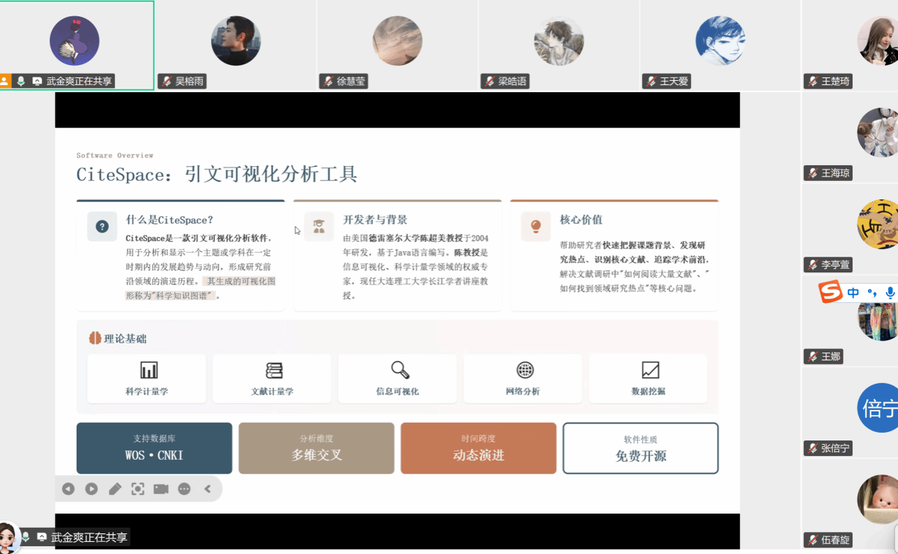 讨论会上,教师团队以国际文化经济学期刊Journal of Cultural Economics2007—2025年发表的文献为研究样本,带领学生运用 Citespace 软件开展文献计量与可视化分析实践。通过软件操作演示与数据结果解读,师生共同揭示了国际文化产业研究的热点演进轨迹与核心理论特征。